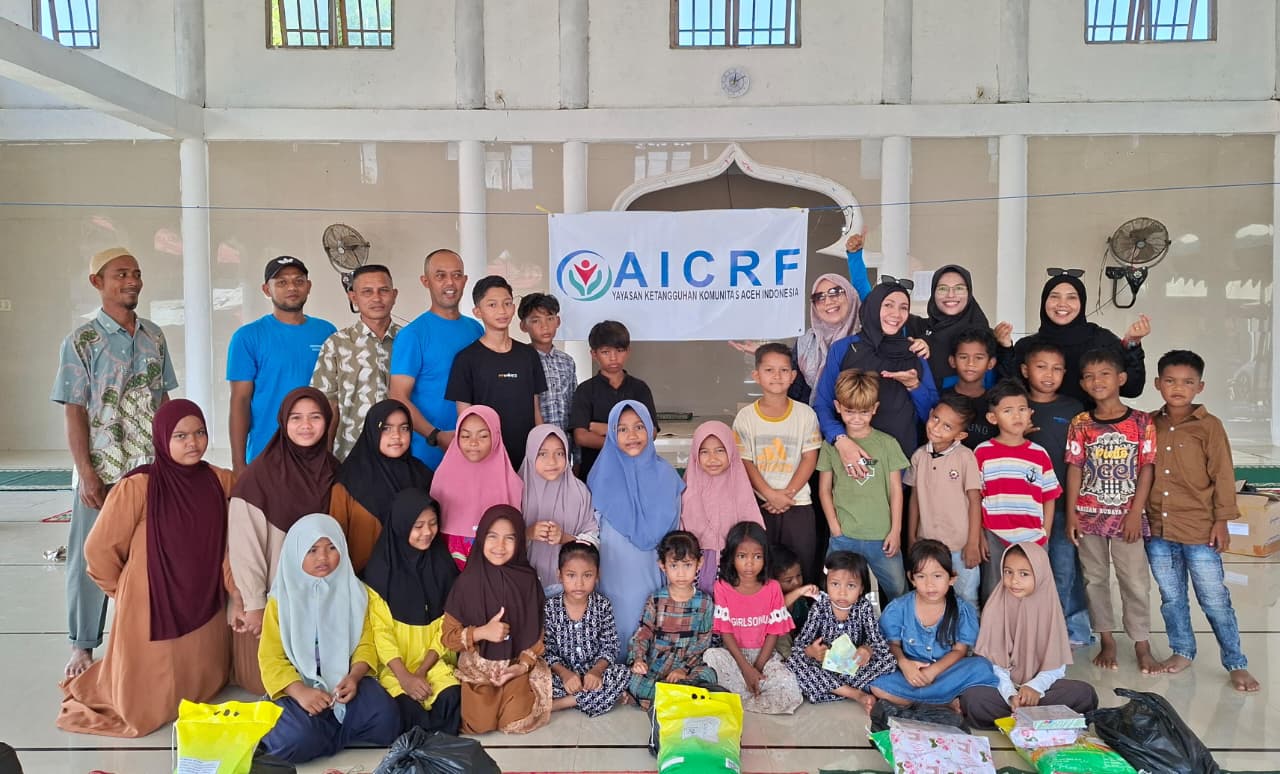Imran Ketua AICRF melalui Sekretaris Dewi Phoennadiyani, menyampaikan; kegiatan paket Ramadhan Care & Share menyasar 33 anak Yatim Piatu, Yatim, Piatu dan Fakir Miskin warga penyintas bencana 26 November 2025 di Desa Geunteng, Kabupaten Pidie Jaya, Aceh.