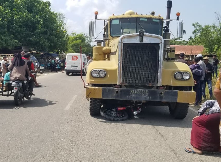 Setibanya di lokasi kejadian, pengendara Honda CRF berusaha menyalip satu unit truk vakum milik PT PGE dengan nomor polisi BL 8263 AX yang berada di depannya.
