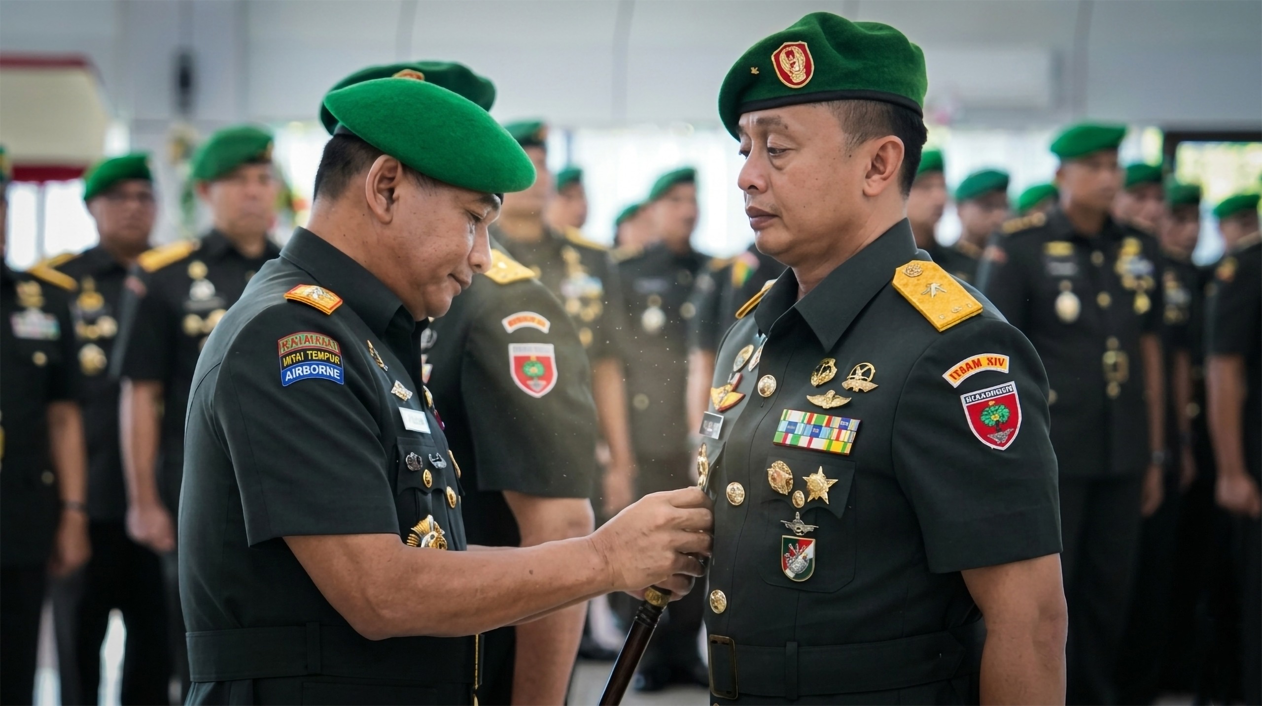 DISTORI.ID – Inspektur Kodam XIV/Hasanuddin berganti diserah terimakan Jabatan tersebut Jumat 10 April 2026.Jabatan Irdam Irdam XIV/Hasanuddin diserahterimakan dari Brigjen TNI Berlin Germany, kepada Brigjen TNI Wulang Nur Yudhanto.