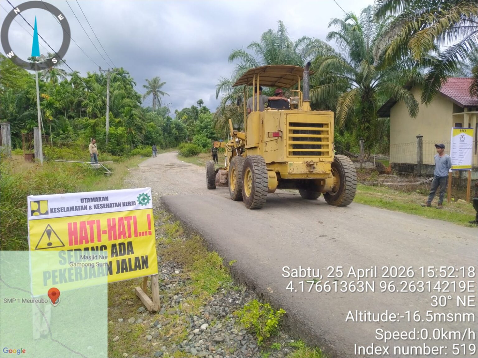 Caption foto : kegiatan peningkatan ruas jalan penghubung antar Desa Reudeup, Buloh dan Desa Bukit Jaya di Kecamatan Meureubo, Kabupaten Aceh Barat. []
