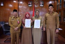 DISTORI.ID – Bupati Aceh Jaya, Safwandi, menyerahkan Laporan Keuangan Pemerintah Kabupaten Aceh Jaya Tahun Anggaran 2025 kepada Kepala Badan Pemeriksa Keuangan (BPK) RI Perwakilan Aceh, Andri Yogama, di Kantor BPK RI Perwakilan Aceh, Banda Aceh, Rabu (29/4/2026).