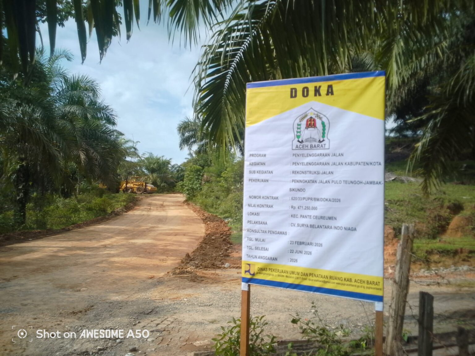 Untuk pekerjaan peningkatan ruas jalan Pulo Tengoh, Jambak dan Sikundo tahun ini dilakukan oleh CV Surya Belantara Indo niaga dengan pagi anggaran sebesar Rp 471.250.000 yang bersumber dari Dana Otonomi Khusus Aceh (Doka) tahun 2026.