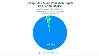 DISTORI.ID – Kotak kosong meraih 3,44% suara sementara dalam pemilihan bupati dan wakil bupati Aceh Utara pada Pilkada Serentak, Rabu…