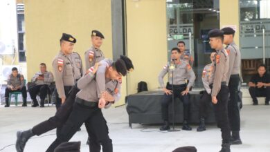 DISTORI.ID – Kapolda Aceh Irjen Pol. Marzuki Ali Basyah, memperagakan ilmu bela diri kepada ratusan personel Ditsamapta Polda Aceh dalam…