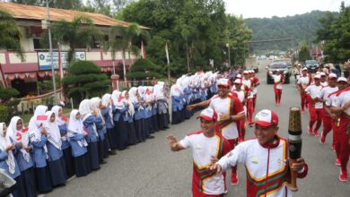 Ribuan Pelajar Aceh Selatan Turun ke Jalan Sambut Kirab Api PON 2024