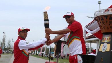 DISTORI.ID – Akhirul Wadhan, top skor sepak bola PON XX Papua 2021, memimpin arak-arakan Kirab Obor PON XXI Aceh-Sumut 2024…