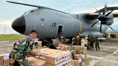 Pesawat Airbus A-400 TNI AU Bawa 24 Ton Bantuan Korban Banjir Aceh Tiba di Bandara SIM