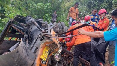 Truk Angkut Pupuk Terjun ke Jurang Seunapet Lembah Seulawah, Sopir Tewas Terjepit