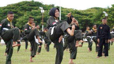 Ratusan Prajurit Kodam IM Latihan Pencak Silat di Blang Padang