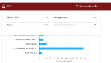 DISTORI.ID – Perolehan suara Sudirman Haji Uma calon anggota Dewan Perwakilan Daerah (DPD) RI dari Aceh berdasarkan hasil real count…