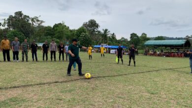 DISTORI.ID – Penjabat (Pj) Bupati Aceh Besar Muhammad Iswanto, melakukan tendangan perdana pada laga pembuka Turnamen Sepak Bola HUT ke-10…