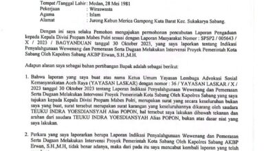 DISTORI.ID – Ketua Yayasan Lembaga Advokasi Sosial Kemasyarakatan Aceh Raya (Laskar) Muhammad Faisal alias Breihme mencabut laporan terhadap Kapolres Sabang…