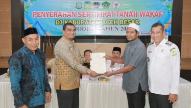 Kejari dan Kemenag Aceh Besar Serahkan 80 Sertifikat Tanah Wakaf kepada Nazir