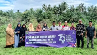 Semarak HAB 79, ASN Kemenag Aceh Jaya Tanami Pohon di Tanah Wakaf dan Gelar Bakti Sosial