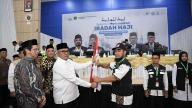 DISTORI.ID – Penjabat Gubernur Aceh, Bustami melakukan pelepasan jemaah haji yang tergabung dalam kelompok terbang (kloter) Pertama Jamaah Calon Haji…