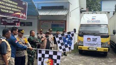 DISTORI.ID – Personel Polres Maros mengawal proses pendistribusian logistik Pilkada 2024. Logistik itu didistribusikan dari Gudang Logistik KPU Kabupaten Maros…