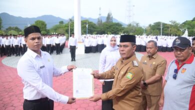 DISTORI.ID – Bupati Aceh Besar Muharram Idris menyerahkan Surat Keputusan (SK) pengangkatan 890 Pegawai Pemerintah dengan Perjanjian Kerja (PPPK) tahap…