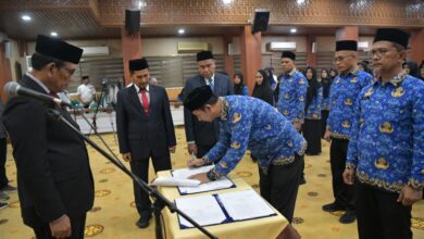DISTORI.ID – Asisten Administrasi Umum Sekda Aceh, Muhammad Diwarsyah, mengukuhkan 610 pejabat administrator dan pengawas dalam lingkungan Pemerintah Aceh, di…
