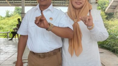 DISTORI.ID – Sekretaris Daerah (Sekda) Aceh, Bustami, bersama istrinya Mellani menggunakan hak suara di Pemilu 2024 di TPS 09 Masjid…
