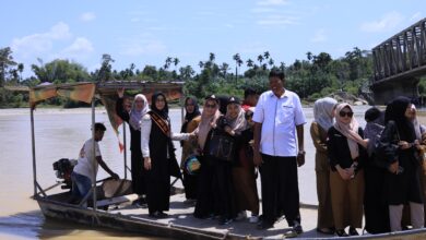Naik Rakit Lintasi Krueng Nagan, Bunda PAUD Nagan Raya Kunjungi Desa Alue Buloh