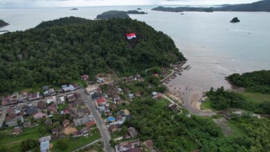 Semarak kemerdekaan, bendera Merah Putih raksasa berkibar di tebing Aceh Jaya