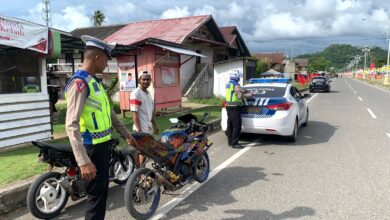 DISTORI.ID – Sebagai langkah dalam menjaga ketertiban lalu lintas, Satlantas Polres Aceh Jaya menggelar Razia Khusus Penertiban Knalpot Brong/Racing pada…