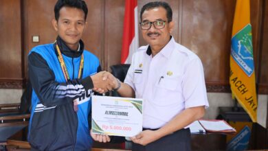 Pemkab Aceh Jaya Beri Bonus kepada Al Muzammil Peraih Medali Perunggu di Porwanas