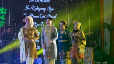 DISTORI.ID – Ketua Dekranasda Aceh, Ny. Ayu Marzuki, memamerkan keindahan kerajinan kain songket hasil produksi perajin dari Kabupaten Aceh Besar…